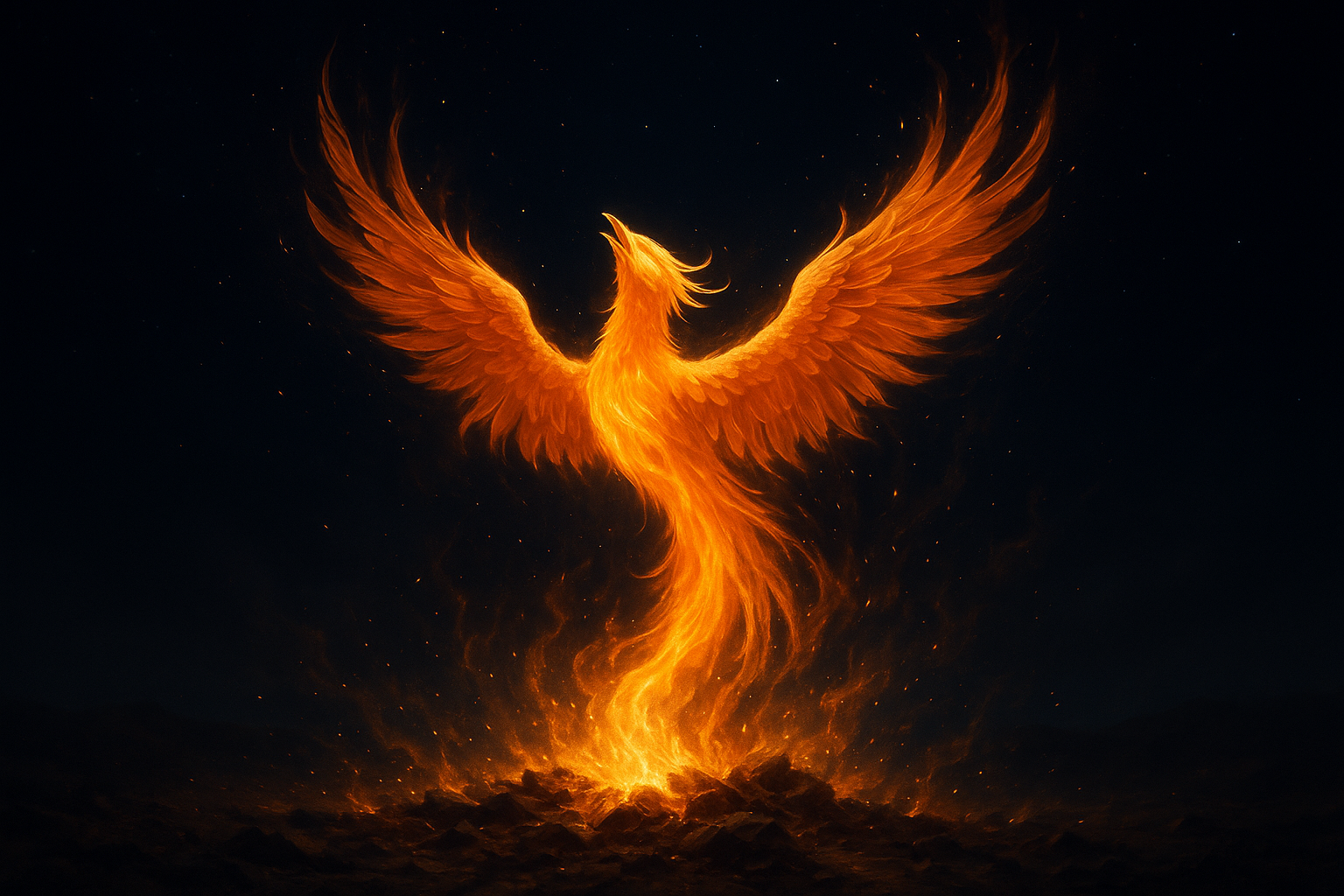The Phoenix was a mythical creature that would desintigrate into a heap of ashes, then from the flames rise to new life.