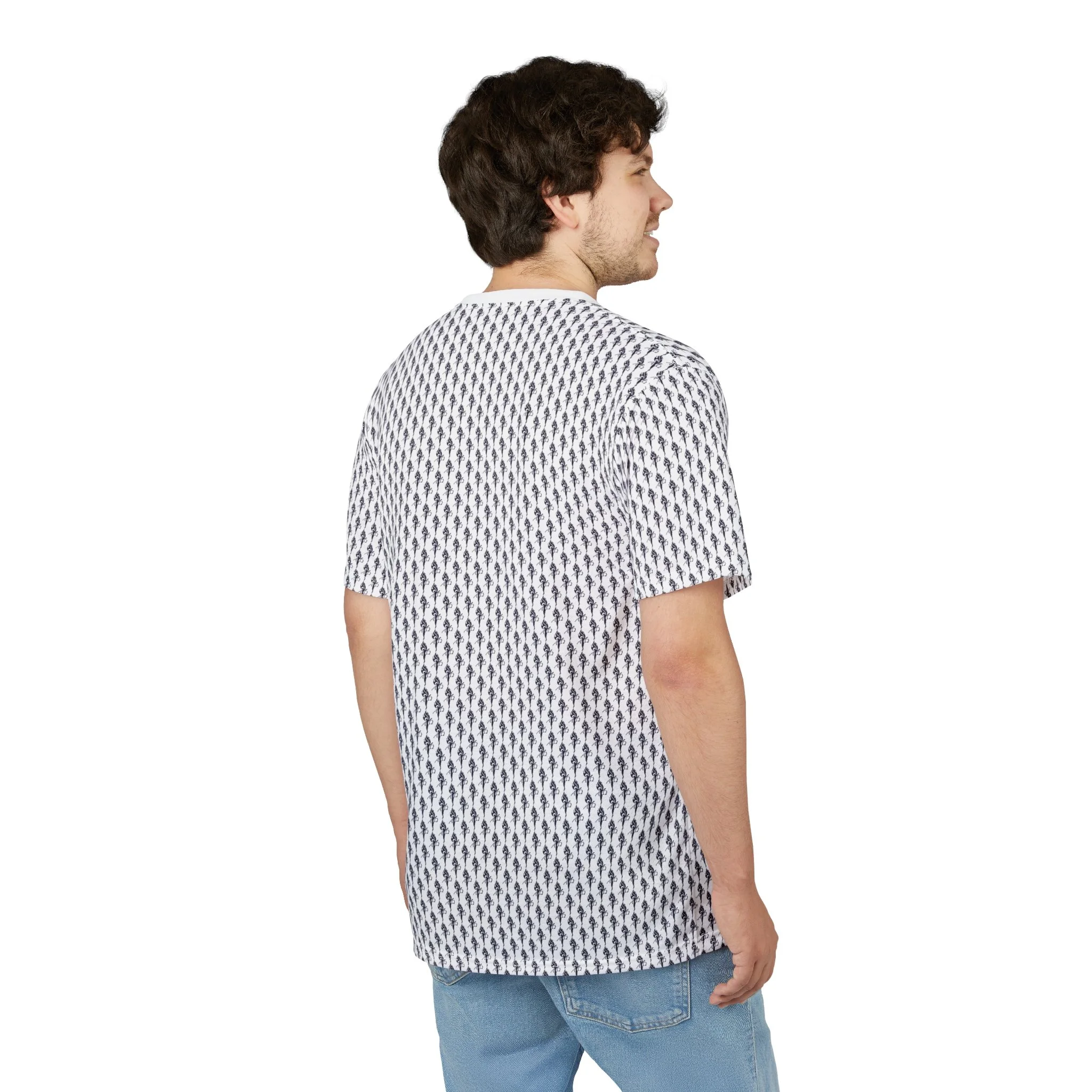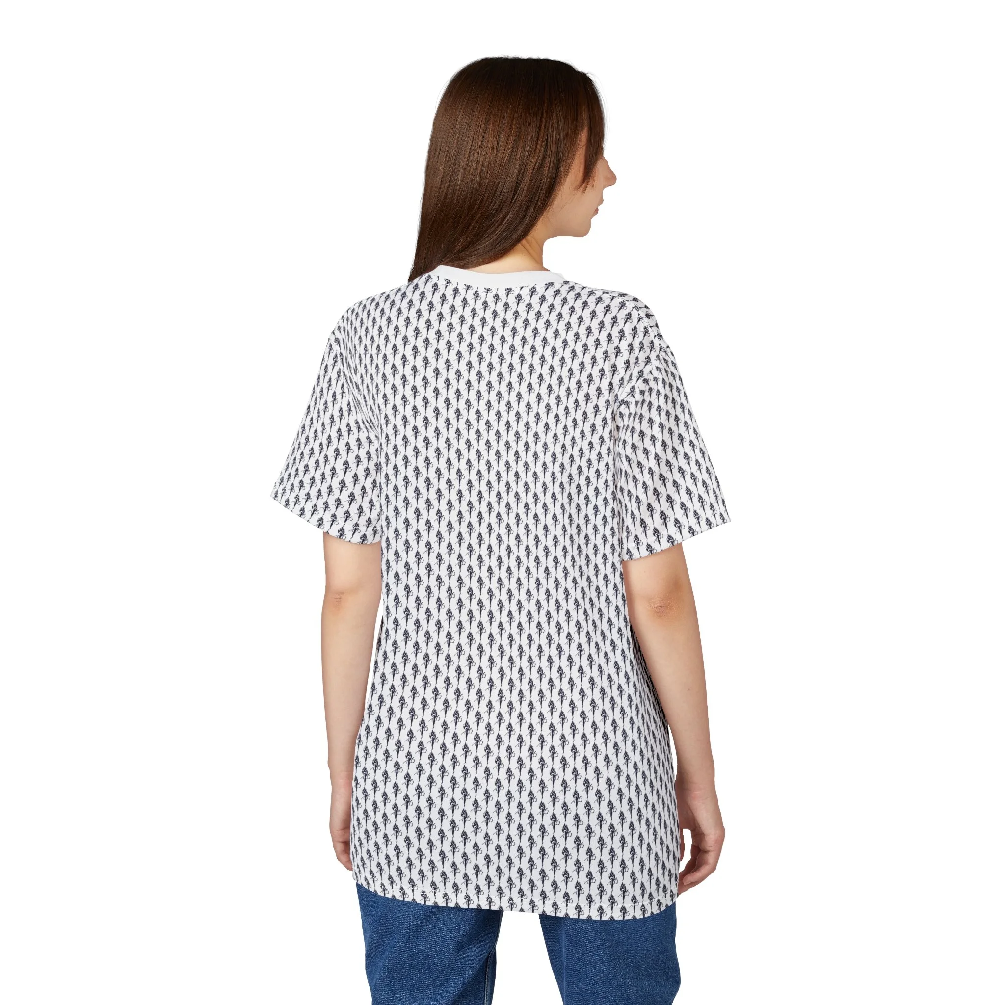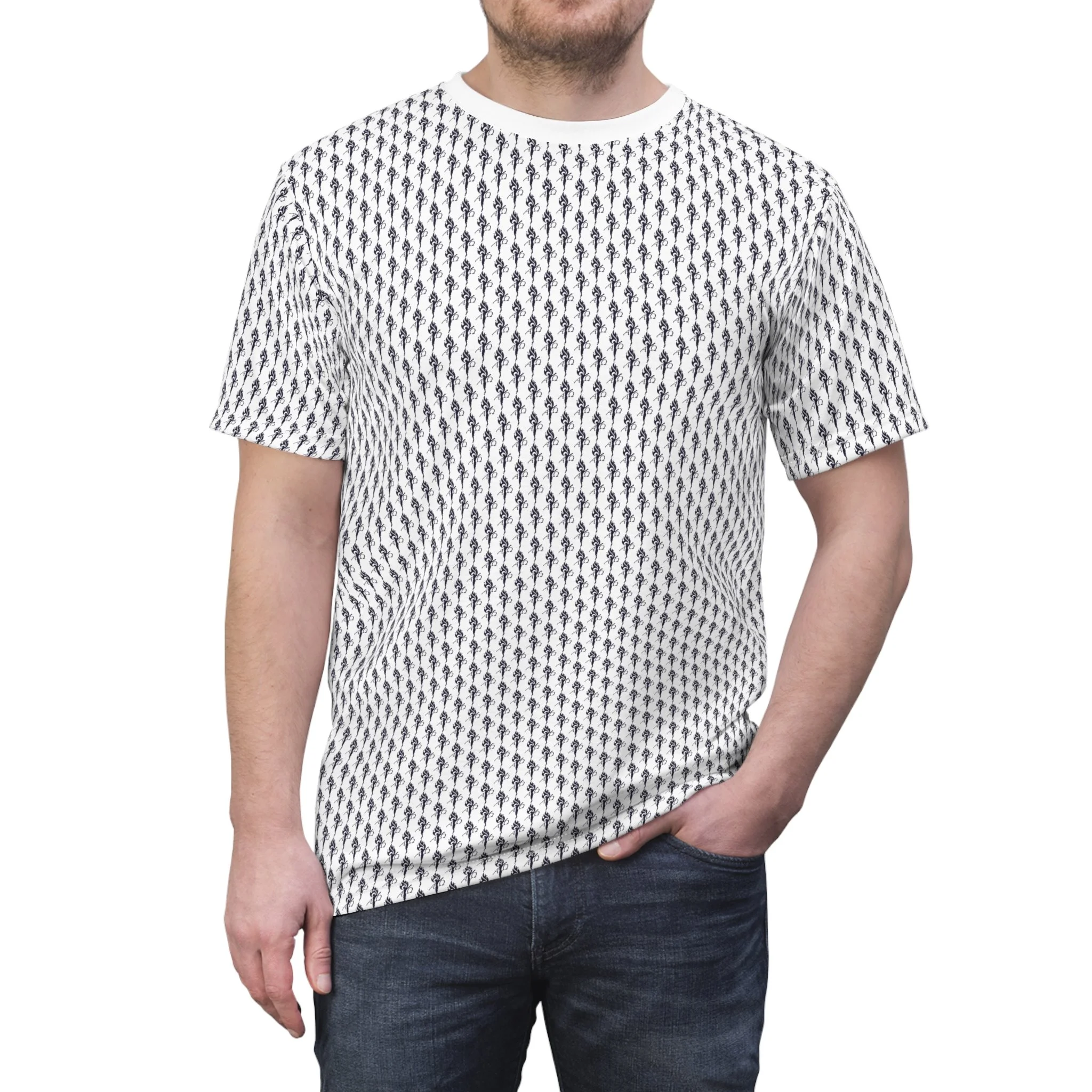 All-Over Herringbone Pattern Tee — Minimal Monochrome Graphic Shirt