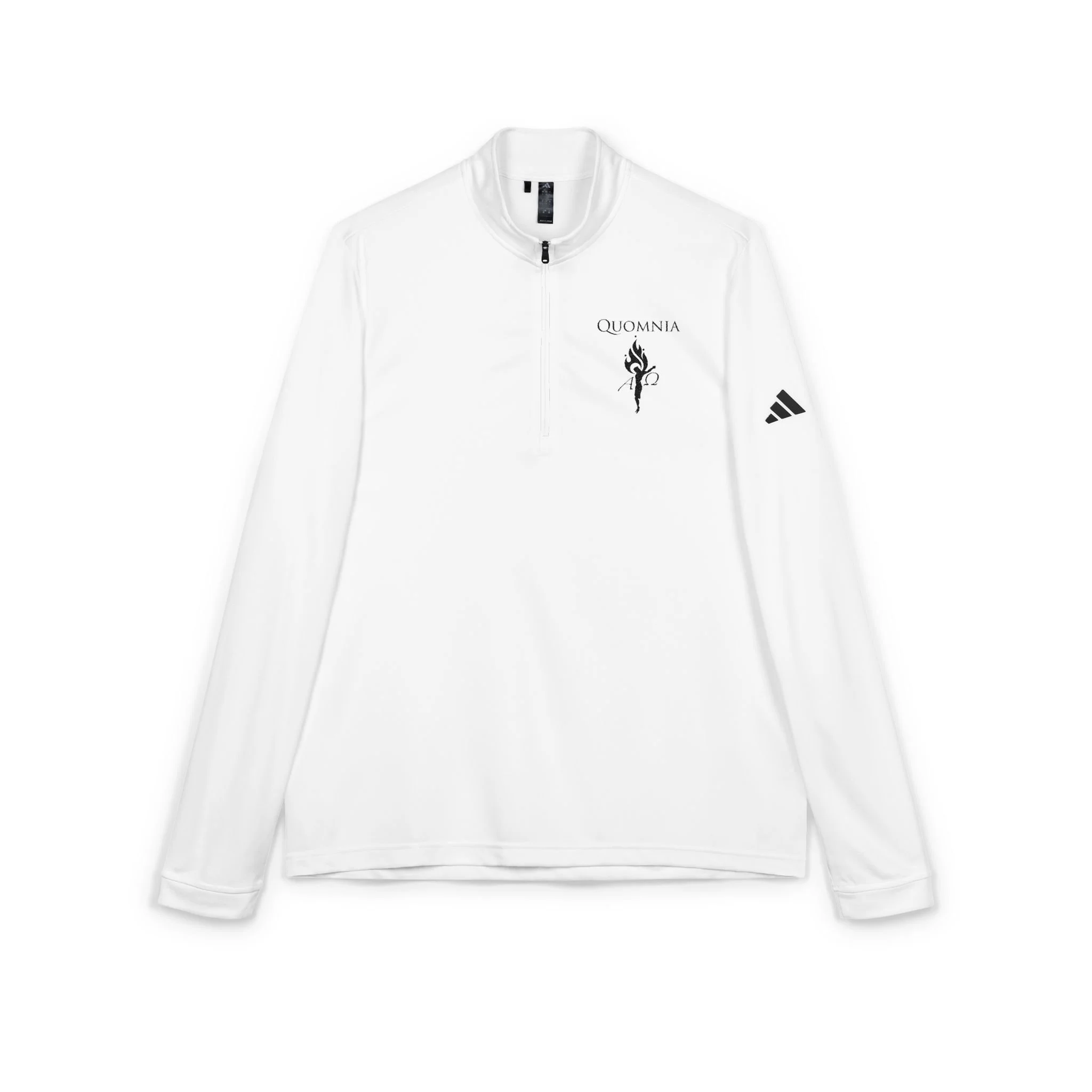 Lightweight and quietly refined, this quarter-zip pullover blends sport-ready performance with subtle embroidered detail. The relaxed silhouette and self-mock collar create an easy layering piece you’ll reach for on bright mornings and long drives. A moisture-wicking hydrophilic finish keeps skin dry while UPF 50+ protection lets you move through sunlit patios or fairway walks without worry. The soft white base and small, dark embroidered motif add a restrained, thoughtful touch — wearable whether you’re pacing the course, stepping into a casual meeting, or packing for a weekend away.
